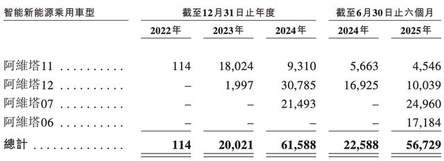 2022年12月,阿维塔开始交付车辆。招股书显示,该公司的车辆交付量由2023年的20021辆大幅增加至2024年的61588辆。2025年上半年,阿维塔的总交付量为56729辆。其中,2025年6月的交付量为12805辆。
