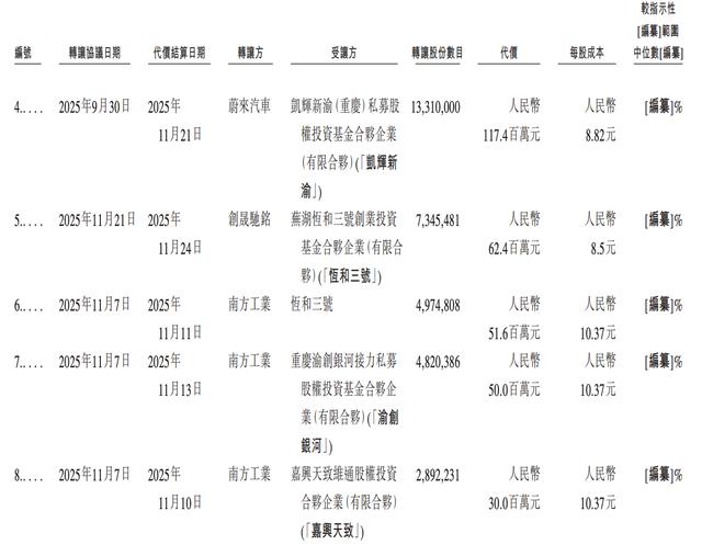 除了博泰车联,蔚来、南方资产等也在对外转让阿维塔的股权。其中,蔚来于2025年9月向凱輝新渝转让阿维塔1331万股股份,代价约为1.17亿元。特别说明的是,此次交易的每股成本为8.82元,亦低于阿维塔2024年12月C轮融资的10.37元。