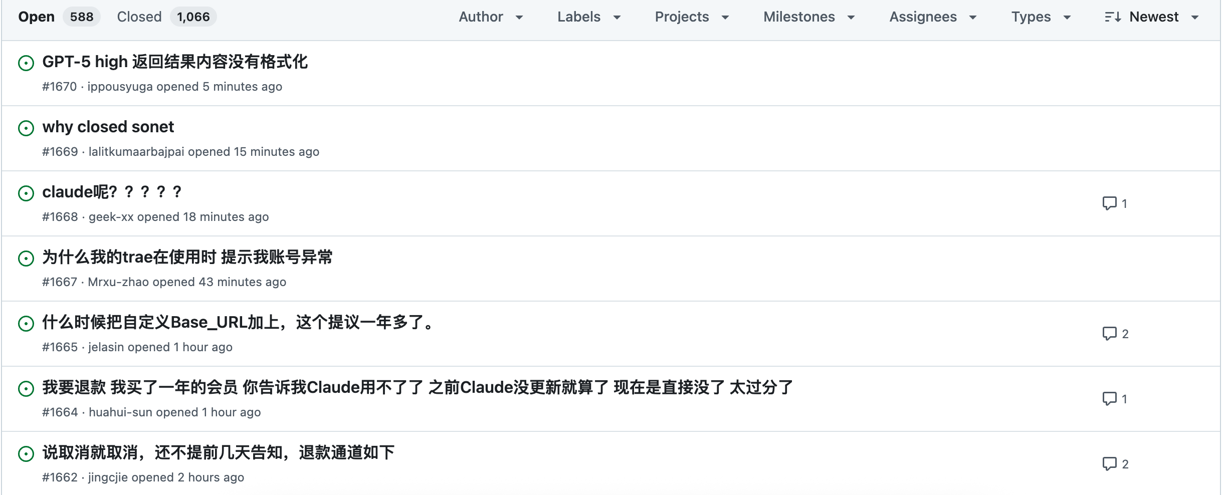 作为回馈,平台还将向Pro会员提供50%额外的快速请求额度,即每月新增300次请求,有效期至2026年1月31日。然而,在Reddit、GitHub等平台上,许多Trae用户对移除Claude模型的调整表示不满,并称将考虑转向其他同类型的AI编程工具。
