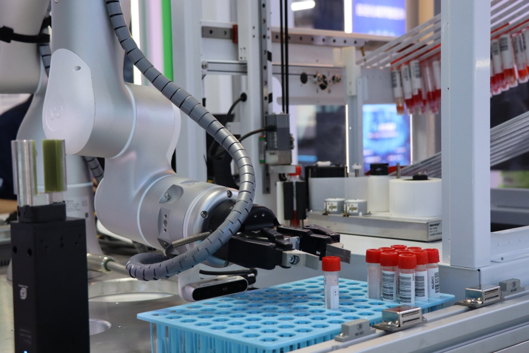 其一、由非夕科技自主研发的全自动化核酸检测(咽拭子采样)解决方案,采用百分百自动化工作站设计,以自适应机器人为核心采样执行机构,以其强大的工业级力控、计算机视觉和先进AI技术为基础,能够实现像人一样“手眼配合”的采样操作,具备高度的安全性、通用性和人机友好。