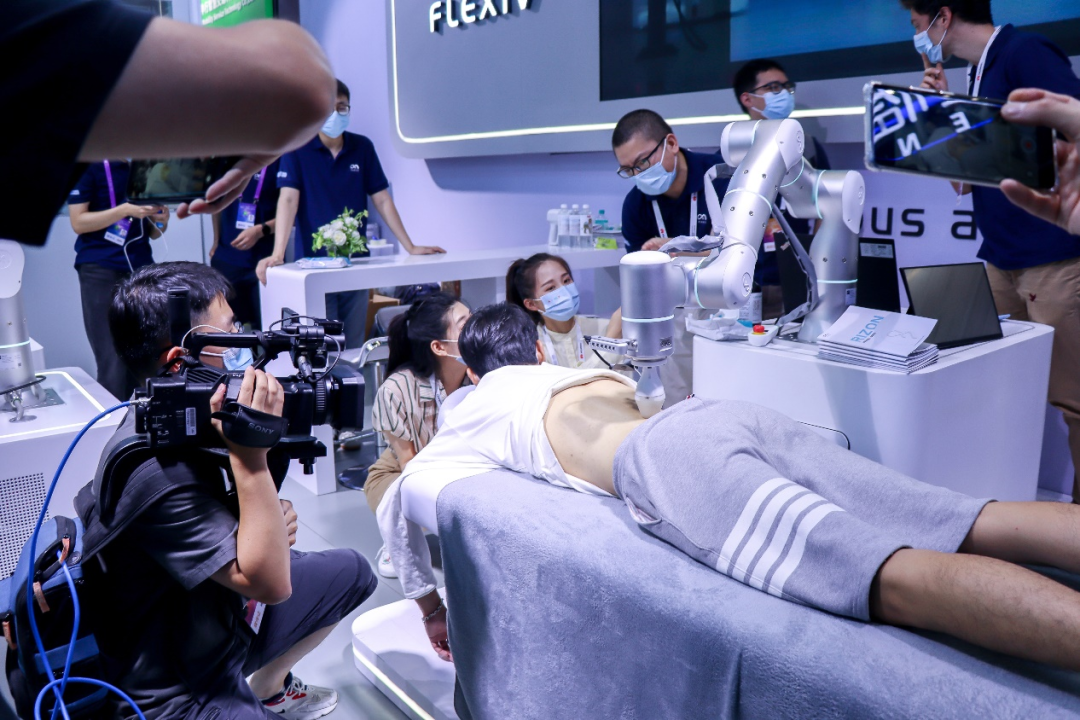 其二、由非夕研发的机器人按摩理疗应用,综合柔性力控、3D视觉和先进AI,可对人体姿态及局部位置进行实时识别,自动匹配脊柱位置及相关穴位,模拟人手按推、指揉脊柱附近及腰部等区域的软组织。
