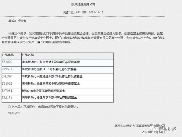 尽管目前的损失额度并没有进行最后清算确认,华软新动力也没有进一步地行动,只是在11月14日声明发布的第二天,将旗下6只基金的基金经理由彭冬变成了高旸。