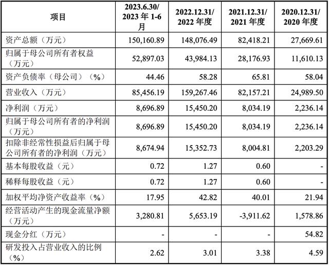 2020年、2021年、2022年和2023年上半年,西典新能的营收分别为2.50亿元、8.22亿元、15.93亿元和8.55亿元;净利润分别为2236.14万元、8034.81万元、1.55亿元和8696.89万元,扣非后净利润分别为2203.29万元、8004.81万元、1.54亿元和8674.94万元。