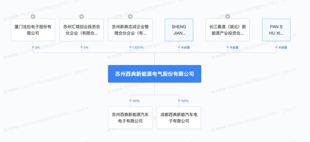 天眼查信息显示,西典新能成立于2007年5月,前身为苏州西典机械有限公司。目前,该公司的注册资本约为1.21亿元,法定代表人为盛建华(SHENG JIAN HUA),主要股东包括盛建华、潘淑新等。