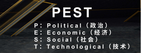 信心的一切的前提,信心首先来自于宏观。讲到宏观,我们会用到一个常用的模型叫PEST模型,包括政治、经济、社会和技术。