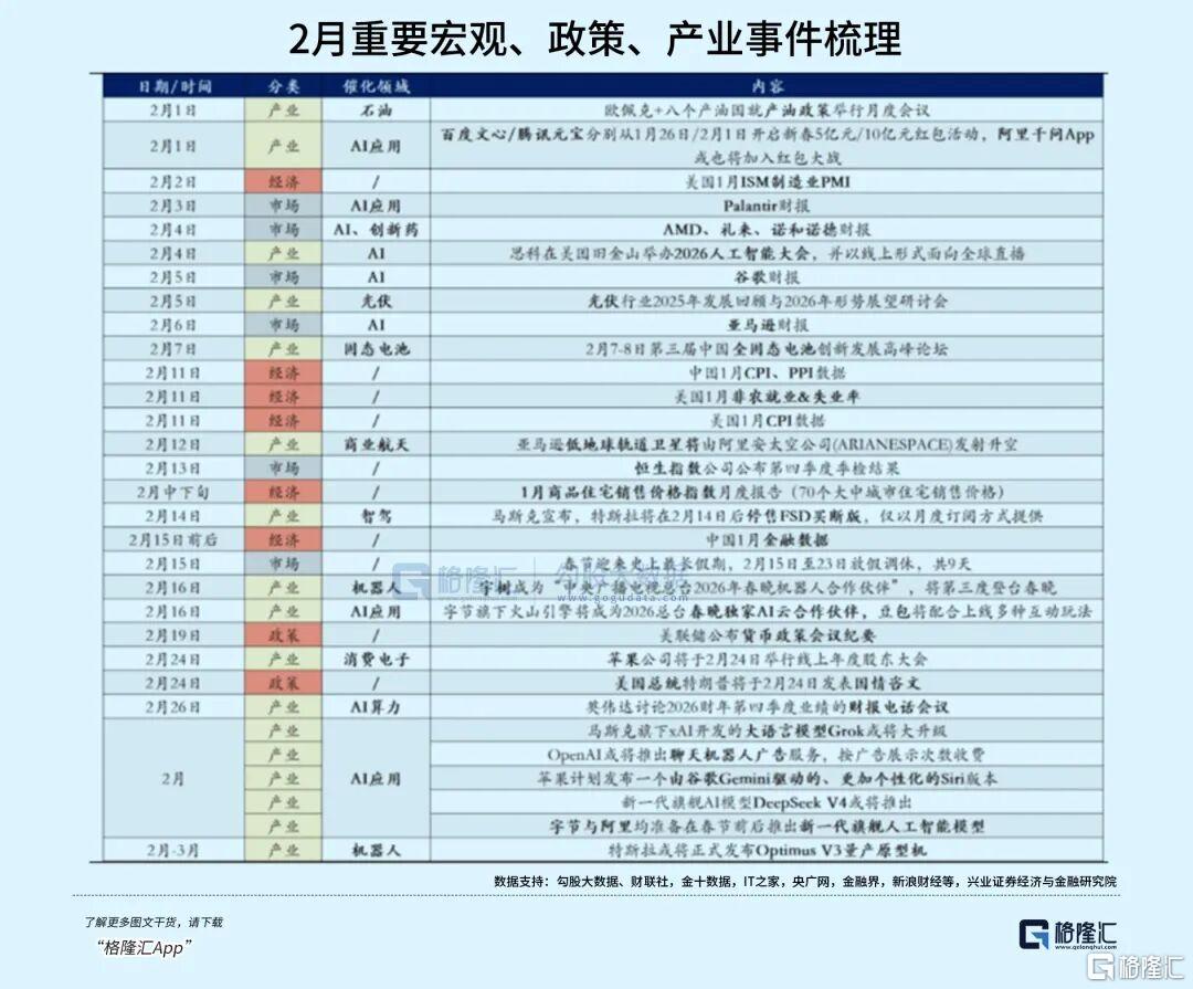 因此,随着宏观层面的边际影响逐渐消化,全球叙事变化对市场情绪冲击最大的时刻或正在逐步过去,而后续事件催化增多、“春节效应”等因素有望为市场修复创造良好环境。