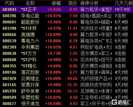焦点股方面,电力板块华电辽能7连板、韶能股份5天4板,光伏板块中利集团3连板。