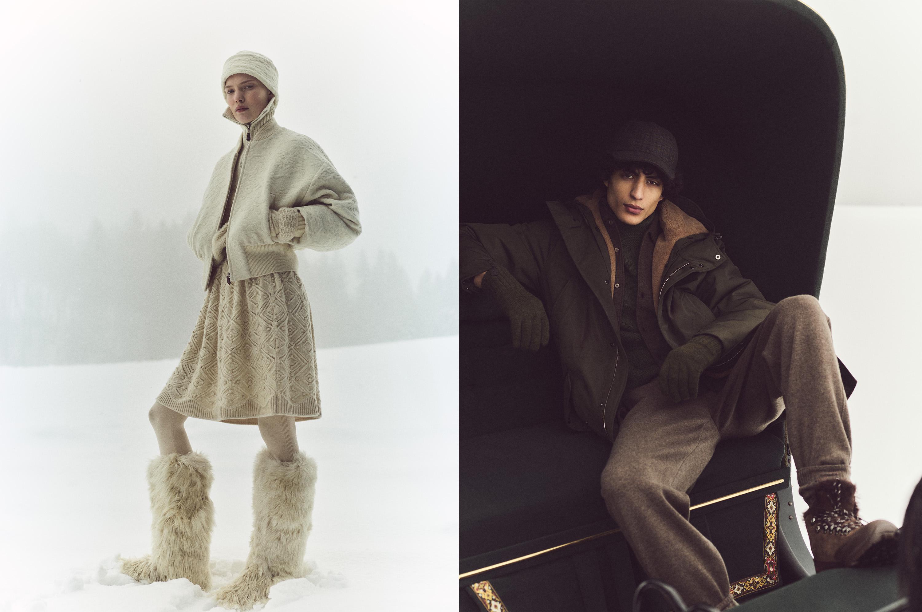 Loro Piana推出2025–2026秋冬假日系列,涵盖日装、晚装以及滑雪服与滑雪后休闲造型,强调从雪道到度假场景的连贯穿着体验。系列灵感源自法国莱萨尔克滑雪场,以宽松廓形与层次化叠搭为主,兼顾山地运动所需的舒适性与品牌一贯的精致质感。