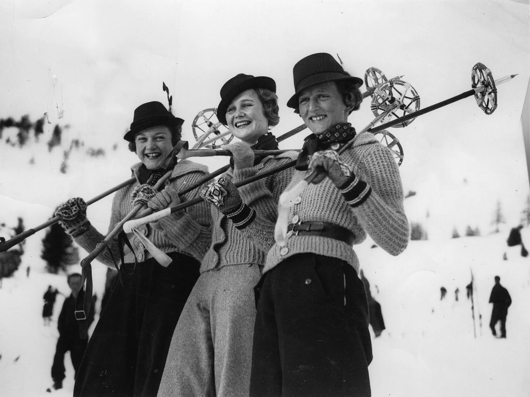 1935年,在圣莫里茨穿着毛衣的滑雪者
