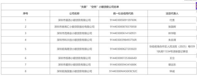 深圳公布8家“失联”“空壳”小贷名单