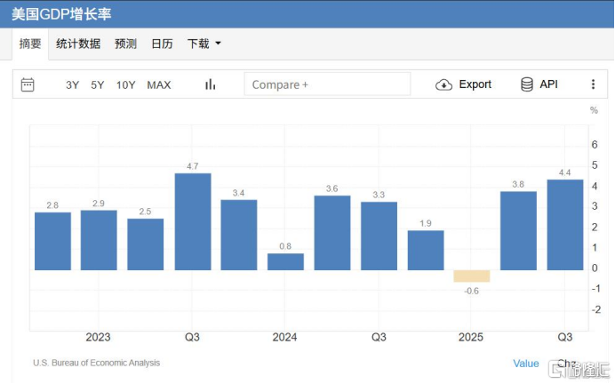 美国商务部22日公布的数据显示,2025年10月和11月美国个人消费支出价格指数同比分别上涨2.7%和2.8%,通胀压力仍然持续。剔除波动较大的食品和能源价格后,10月和11月核心个人消费支出价格指数同比涨幅分别为2.7%和2.8%,与去年7月和8月2.9%的高点接近。此外,美国经济分析局公布的数据显示,美国第三季度GDP季调后环比折年率终值为4.4%,高于预估的4.3%,这是自2023年第三季度以来的最快增速。