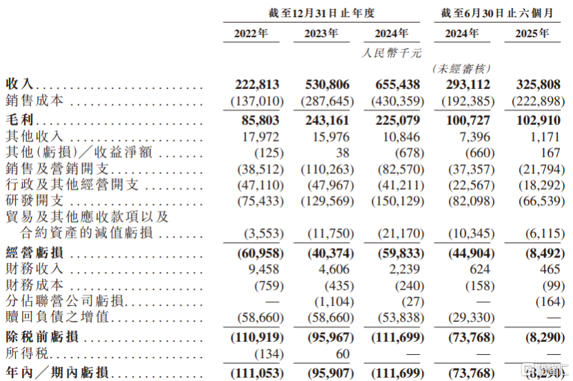 具体来看,2022年、2023年、2024年和2025年上半年,硅基智能的收入分别约2.23亿元、5.31亿元、6.55亿元、3.26亿元,对应的净利润分别约-1.11亿元、-0.96亿元、-1.12亿元和-0.08亿元,经调整净利润分别约-4622.1万元、-2941.2万元、-3524.2万元、528.9万元。
