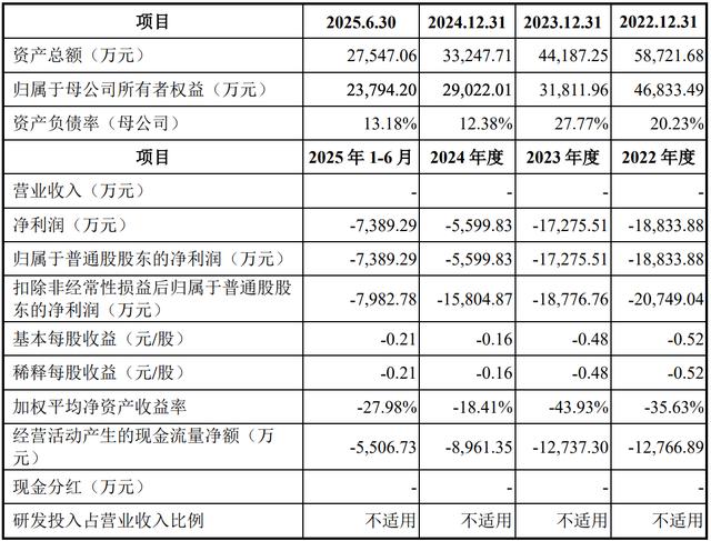 财务表现方面,2022年、2023年、2024度和2025年上半年,必贝特的净利润分别约为-1.88亿元、-1.73亿元、-5599.83万元和-7389.29万元,扣非后净利润分别约为-2.07亿元、-1.88亿元、-1.58亿元和-7982.78万元。
