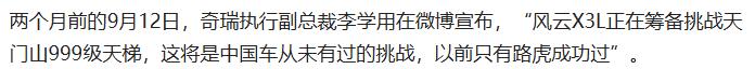 2025年9月,奇瑞汽车执行副总裁李学用就在微博高调预热,称挑战天门山是“明知山有虎”的考验。然而,这场本应展现卓越爬坡能力的营销活动,最终以失败告终。