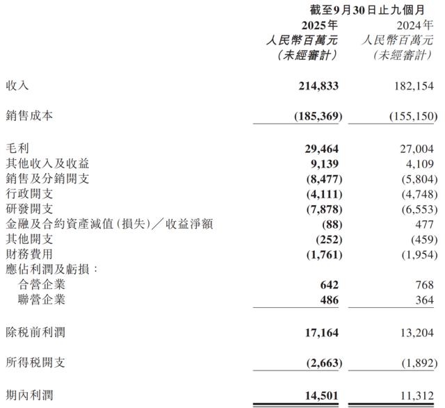 奇瑞汽车近年业绩堪称亮眼。2025年第三季度报告显示,奇瑞实现收入2148.33亿元,同比增长18%;期内利润145.01亿元,同比增长28%。