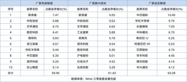 对比三只基金持仓,广发先进制造的持仓较为均衡,重仓股以A股标的为主,同时配置了港股的两只国产算力链股票——华虹半导体和中芯国际;