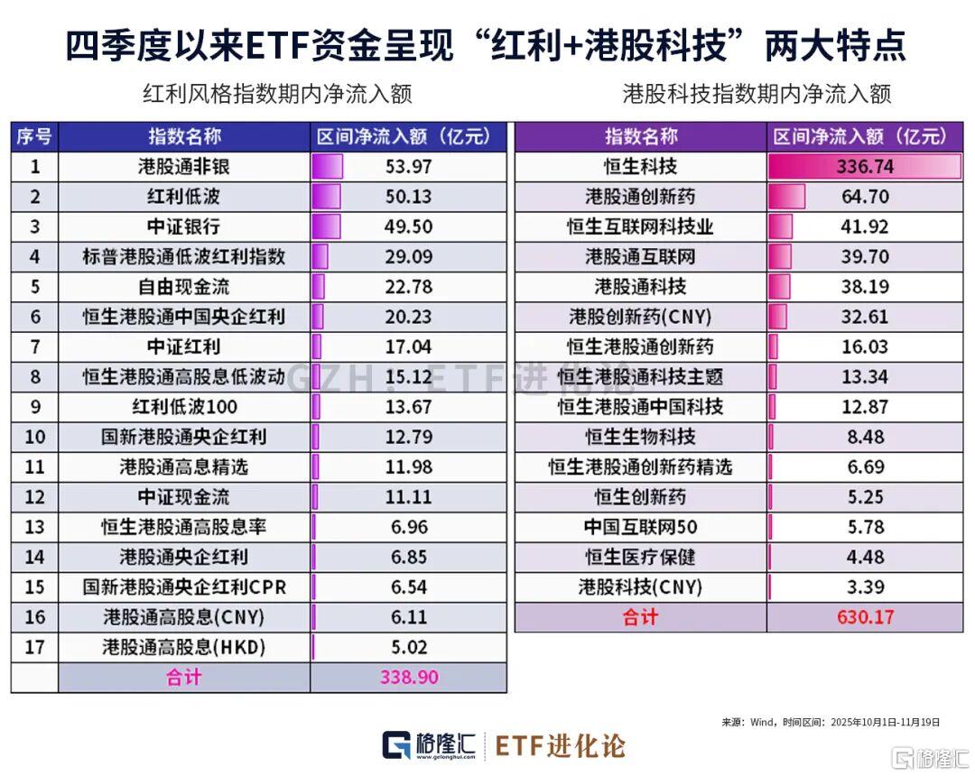 港股通非银、红利低波、中证银行、标普港股通低波红利指数、自由现金流等红利风格指数四季度以来合计净流入额为338亿元。