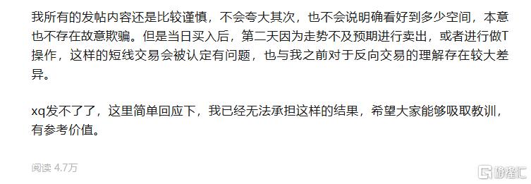 他回应表示,在雪球的本意是记录自己的投资历程,并通过对过去复盘总结,提升自己操作。