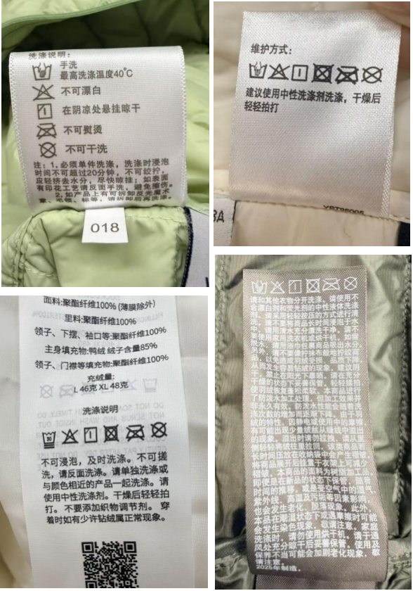 消费者除了排查可能对羽绒服造成损坏的客观因素之外,读懂水洗标签也很重要。