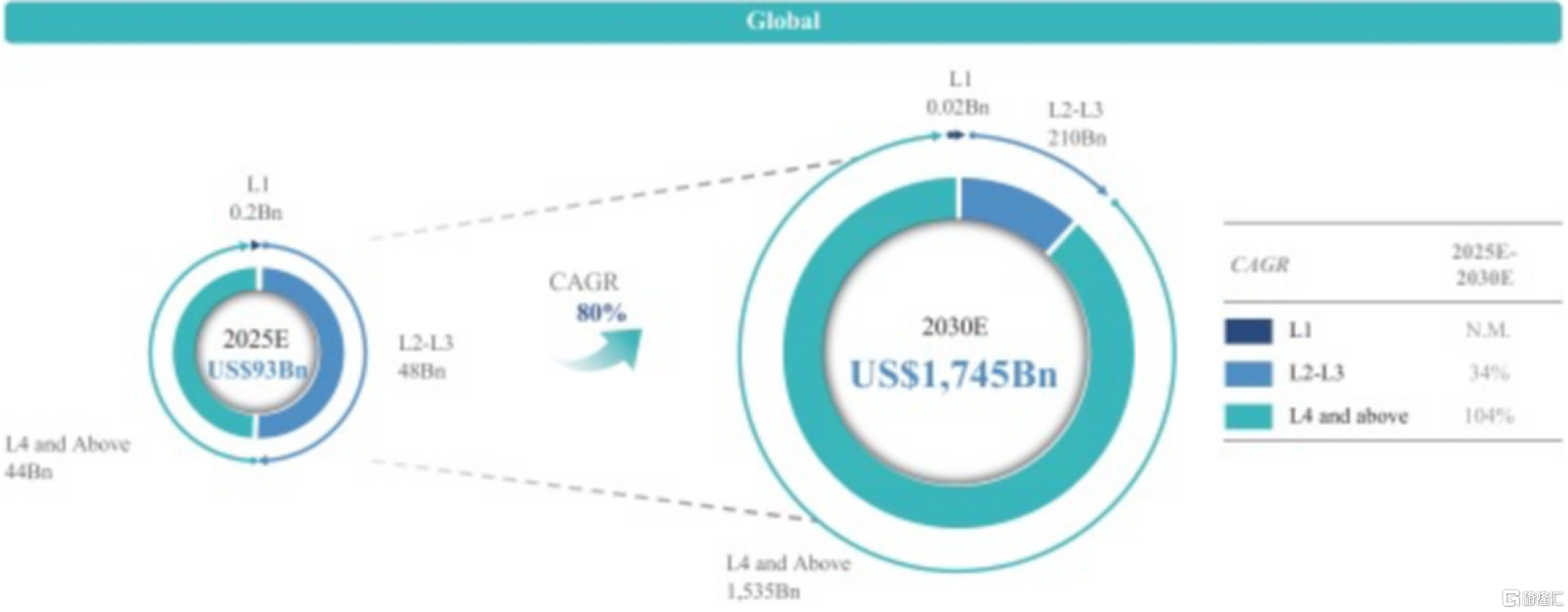 全球自动驾驶市场规模(2025E-2030E)