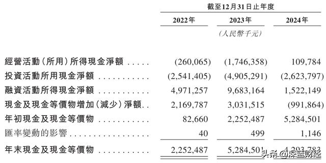 不仅如此,除了2024年实现1.10亿元的经营活动现金流入外,海辰储能报告期内的投资、经营净现金流持续为负,自我造血能力不足;2024年,该公司全年现金及现金等价物净流出9.92亿元。