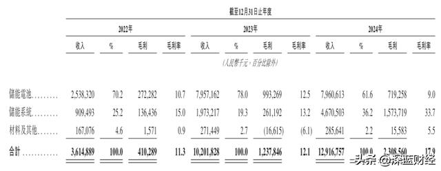 2022年、2023年和2024年(即“报告期”),海辰储能分别实现归母净利润-17.77亿元、-19.63亿元和2.59亿元,于2024年实现扭亏为盈;经调整净利润分别为-2988.7万元、1.61亿元和12.55亿元。