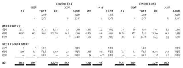 但比较割裂的是,受外延片产能过剩影响,该公司碳化硅外延片价格仍在下跌,2025年前五月,其外延片平均售价已经跌破4千元,为3813元/片,2024年同期则为7924元/片,跌幅同比超50%。