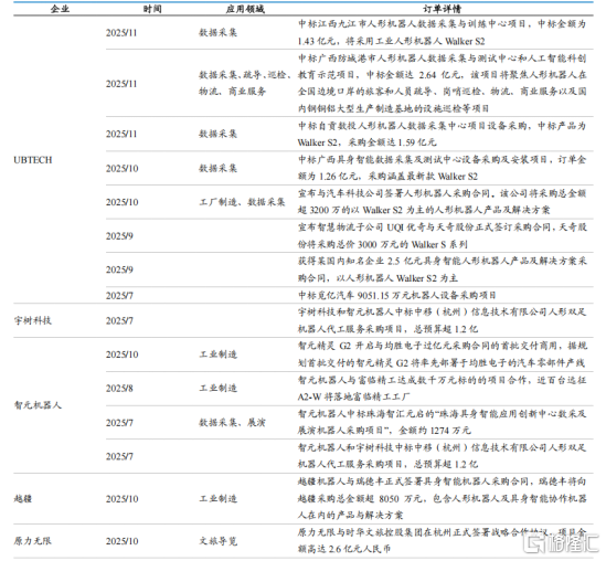 表:2025年下半年以来部分著名机器人企业订单情况梳理