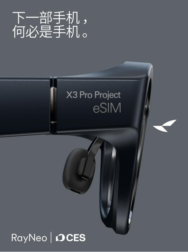 摆脱对外部设备的依赖成为关键技术突破方向。雷鸟创新推出首款搭载eSIM的AR智能眼镜“雷鸟X3 Pro Project eSIM”,在实现高亮高清视觉效果的同时,集成eSIM通信模块并支持4G网络,具备独立联网与通话能力。
