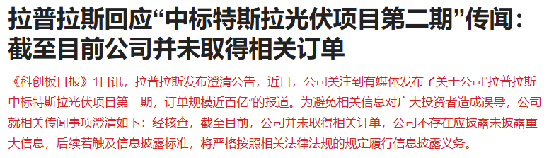 今天盘中有报道称拉普拉斯中标特斯拉光伏项目订单,拉普拉斯直线涨停带动光伏设备板块大涨,但随后拉普拉斯辟谣。感觉挺搞人心态的,好像是财联社发了个报道,然后又被辟谣,这追进去的股民该怎么办?