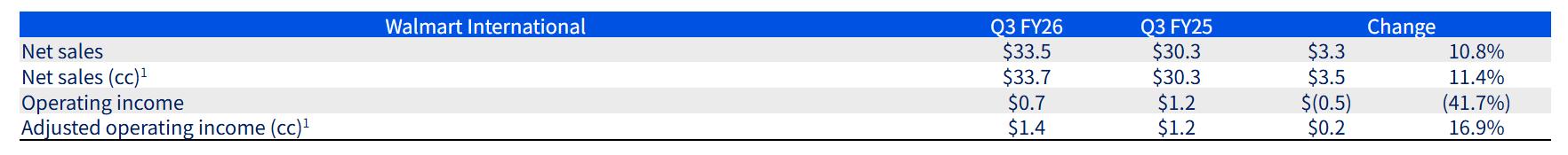 沃尔玛国际市场的销售额为335亿美元,同比增长约10.8%。电商业务销售额增长26%,主要得益于电商平台和门店自提配送。