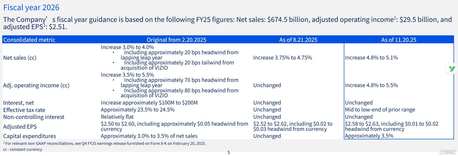 公司还表示,预计全年资本支出将达到净销售额的3.5%,处于此前3%–3.5%预测区间的上限。