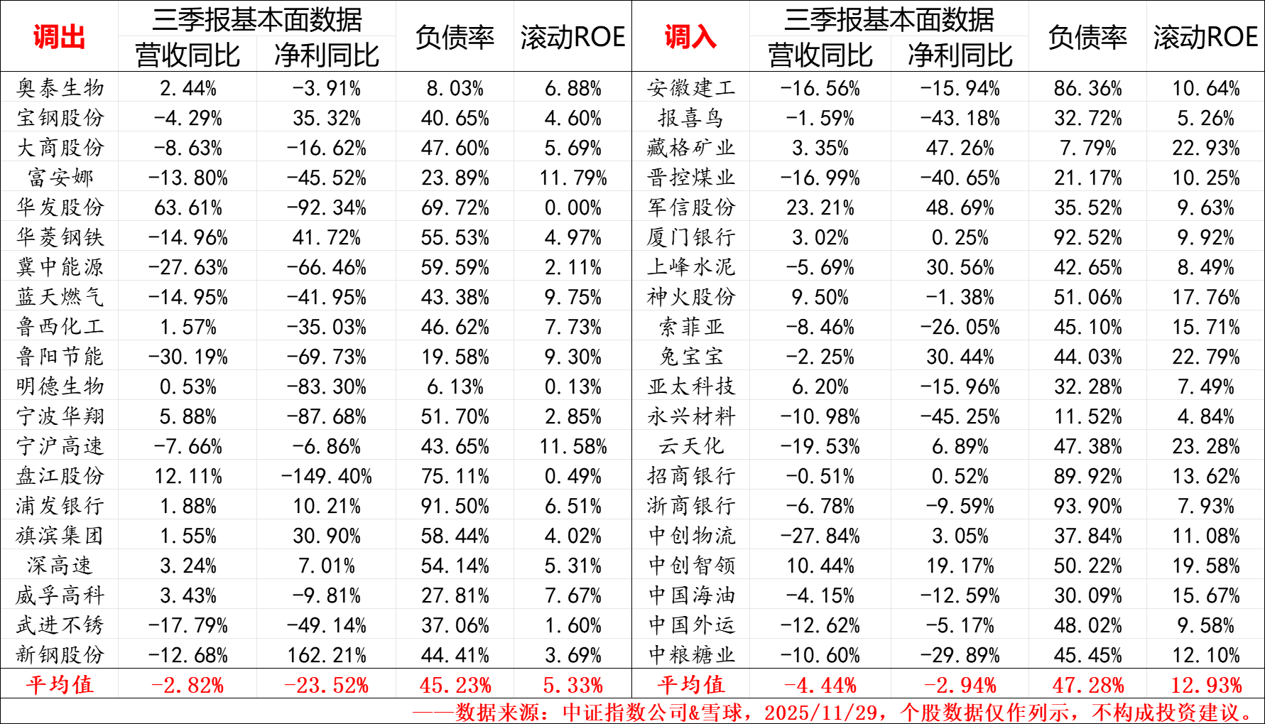 从2025年三季报数据看,调入样本的整体基本面是要远好于调出样本的,净利增速是-2.94% VS -23.52%、ROE是12.93% VS 5.33%,更好的业绩也能更好的保障成分股分红的稳定,不断地将指数内部质量较差的样本调出,再调入质量更好的样本,始终保持指数内部的优胜劣,这就是中证红利指数长期战胜市场的核心优势所在,同样也是我们红利投资人长期投资的底气所在。