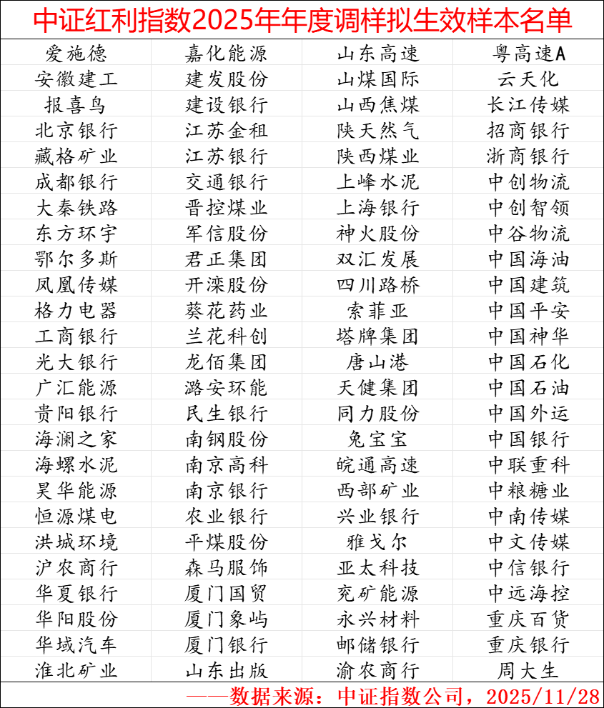 附件一:中证红利指数2025年年度调样拟生效样本名单
