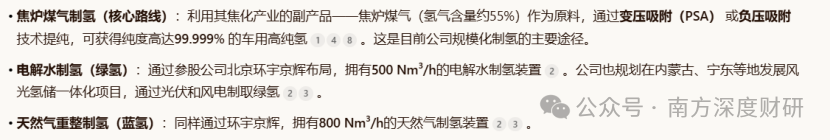 其制氢方式以焦炉煤气制氢(灰氢)为核心,同时布局电解水制氢(绿氢)和天然气重整制氢(蓝氢),形成了多元化的技术路线。