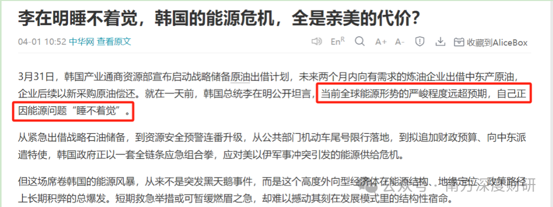 3月31日,韩国总统李在明公开坦言,当前全球能源形势的严峻程度远超预期,自己正因能源问题“睡不着觉”。