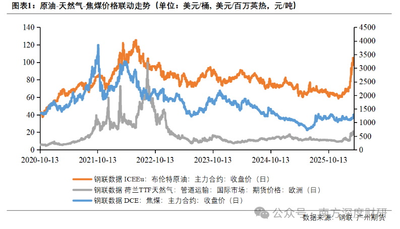 本轮行情的特殊性在于,中东地缘冲突与突发供给事故打破了传统区域市场分割:中东局势直接冲击原油与LNG运输通道,欧洲气源受损导致天然气供给骤减,两大主线共同推升全球能源价格,并触发显著的能源替代效应。