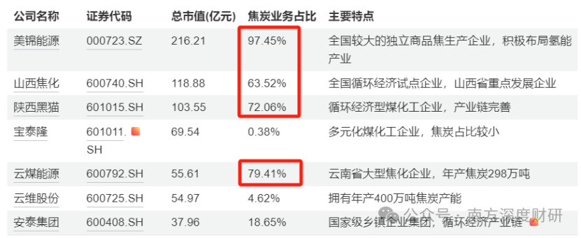 以美锦能源为例,公司为A股规模最大的独立焦炭生产企业,焦炭收入占比97.45%,其产能布局情况如下: