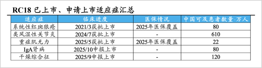 目前,泰它西普在自免赛道不断进击,IgA肾病、干燥综合征均已进入审批阶段,获批后将在这两项极具想象力的市场中打开增量空间。