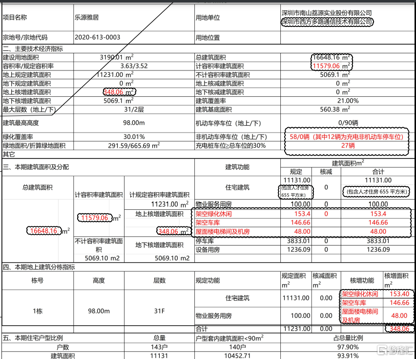 最直观的就是“迷你独栋”的尴尬,项目位于荔源雅苑北向,整个项目就一栋31层的单体楼,建设用地才3190.01㎡,计容面积11579.06㎡,绿化覆盖率约30.01%,连个像样的地面花园都挤不出来。
