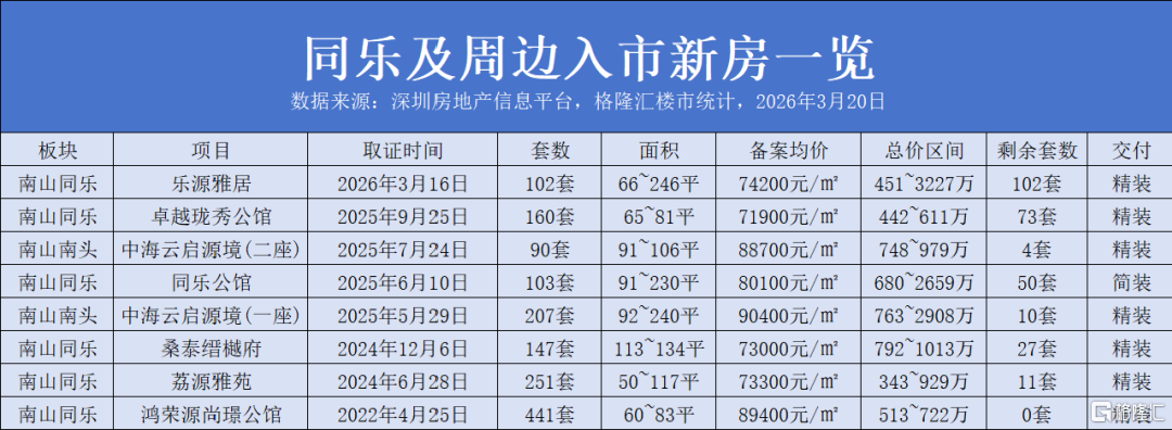 同乐公馆2025年6月开盘,备案均价8.01万/㎡,因为价格太高卖不动,在顺销期间只能大幅降价,单价最低约6.04万起,截至2026年3月20日,深圳房地产信息平台显示才勉强去化约51.46%;