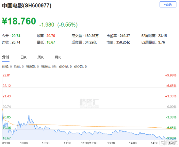 中国电影(板块回调+资金流出+前期涨幅较大)
