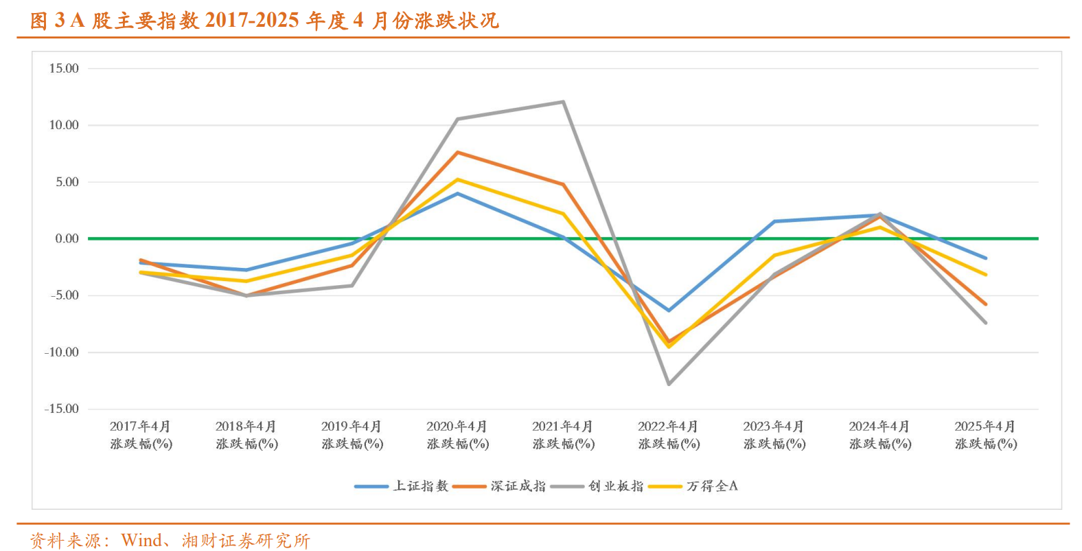 湘财证券指出,从上证指数、沪深300、深证成指等主要宽基指数在2017年至2025年期间的月度涨跌排名状况来看,除2021年外,在其他年份,4月份的涨幅相对平淡。
