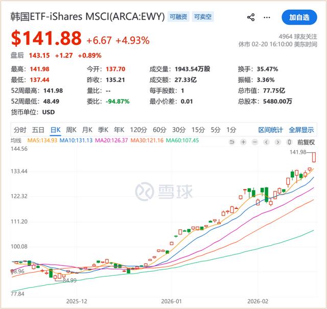 而在新春假期,存储行业利好带动韩国指数继续大涨,韩国ETF-iShares MSCI(ARCA:EWY)日内大涨近5%,无疑会继续刺激市场。