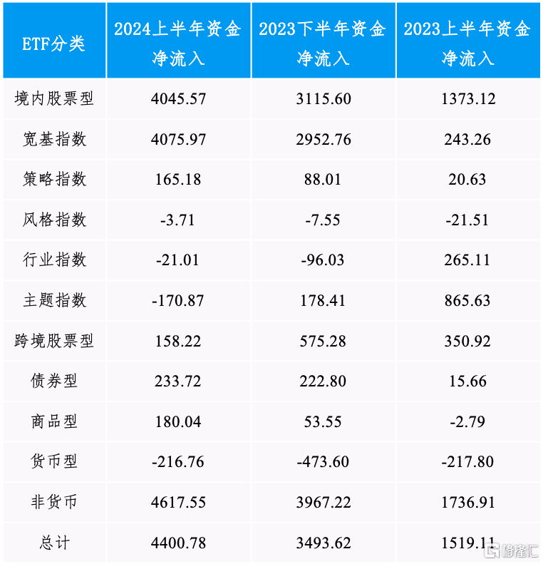 债券ETF方面,上半年经济基本面和资金面均利好债市,叠加银行理财配置需求,推动资金流入。