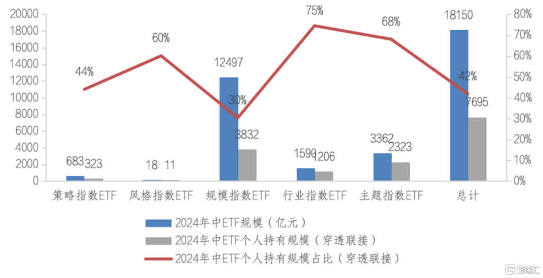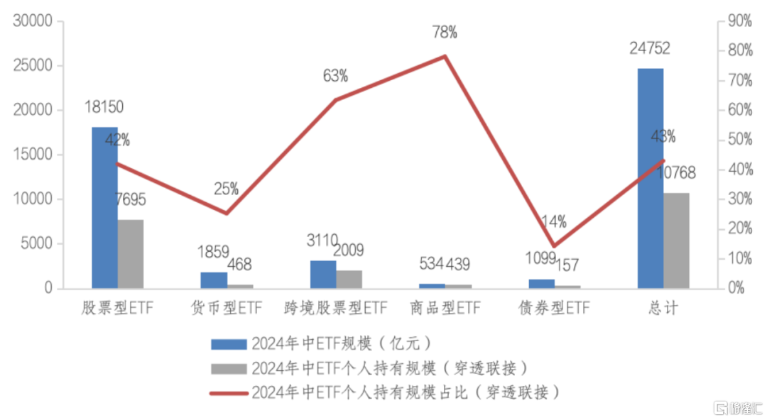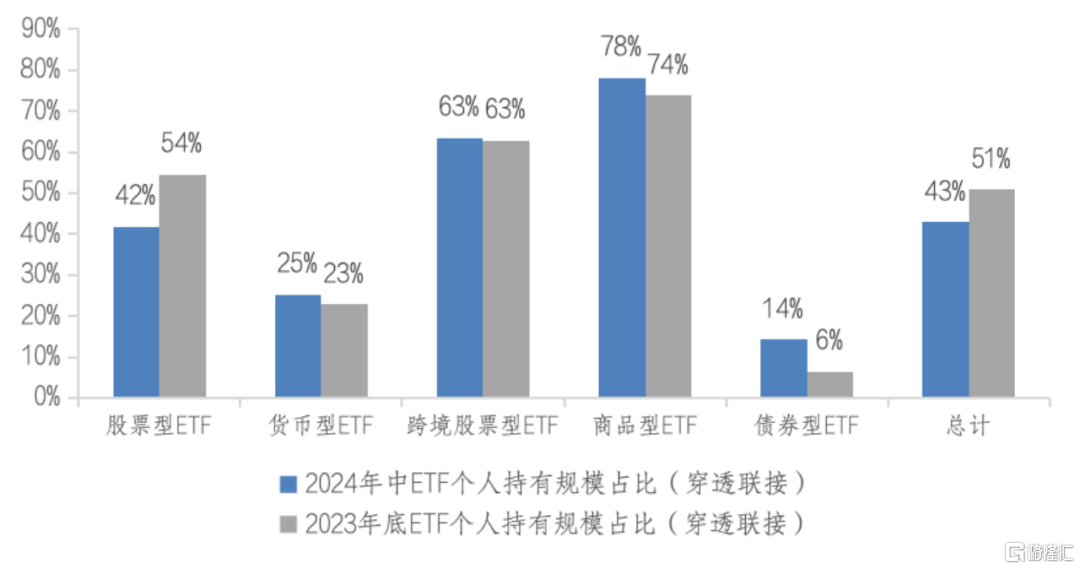 图表2 不同类型ETF的个人投资者持有情况(穿透联接)