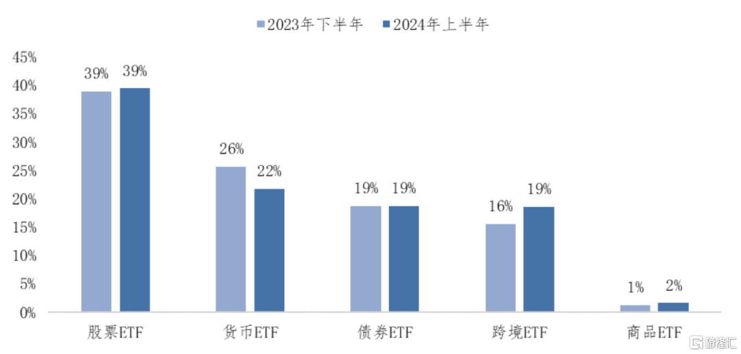 图表9 国内各类型ETF半年度成交额占比变化