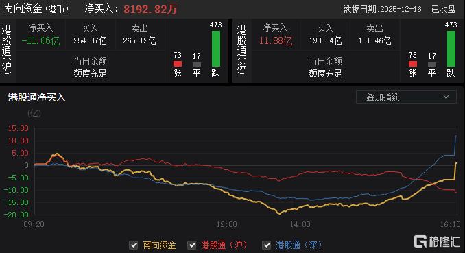 今日,南向资金净买入8192.82万港元,其中港股通(沪)净卖出11.06亿港元,港股通(深)净买入11.88亿港元。