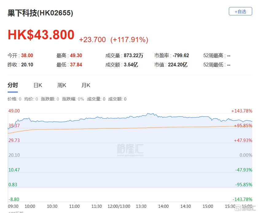 果下科技今日首日上市收涨117.91%%,报43.8港元,市值224.2亿港元。果下科技香港公开发售获1890.73倍认购,国际发售获3.63倍认购;最终发售价20.1港元,所得款项净额7.0055亿港元。果下科技成为今年港股新股AI机器人安全领域超购王。