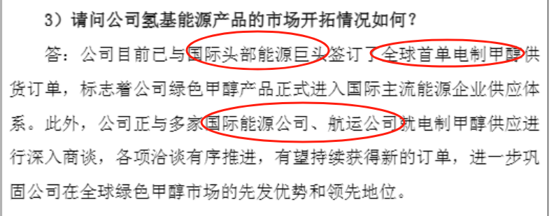 1、全球首单落地:公司称与国际头部能源巨头签订全球首单电制甲醇供货订单;
